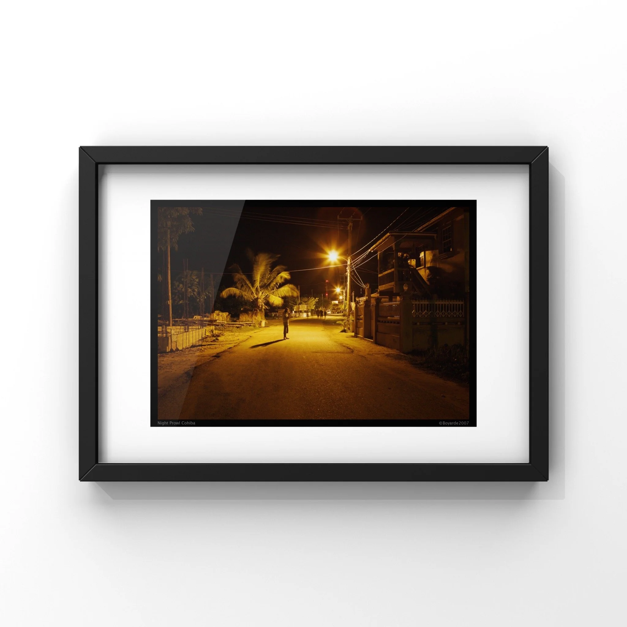 Although Boyarde is most well known for her Fashion and Body Art, her time spent living in Belize for 5 years, spawned a Body painter by day and ‘Night Prowler’ by night. From the twists and turns of the Hummingbird Highway cutting through the mountainous jungle, to the Garifuna settlement villages by the coast, Boyarde scoured the country by night, looking to transform everyday scenery and the unspectacular, into an open film still, subsumed in cinematic style, to reveal void spaces energized by human interaction. Some places are the habitual everyday, whilst others venture more into the unknown, re-examined through the quietness of night, “these un-peopled scenes awaken the boogie in a baleful moonlit masquerade that suggest dream states full of spectral narratives” (The Independent). By using a minimum three minute shutter speed, the magic of moonlight sets the stage for something remarkable never to be seen by day.